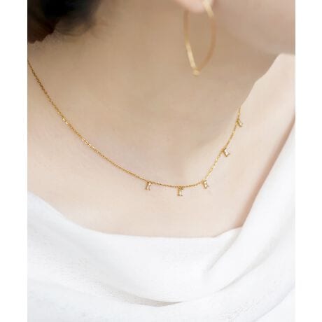 煌めくスクエアビジューが、デコルテに華やぎを与えるネックレス。