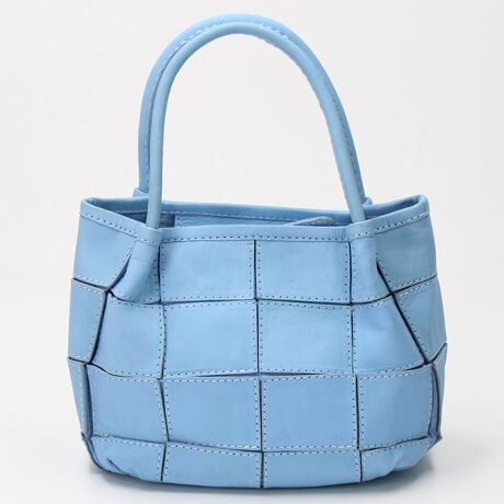 四角くカットされたレザーパーツを丁寧にパッチワーク状に縫製をした、素朴でありながらも洗練された表情のバッグです。