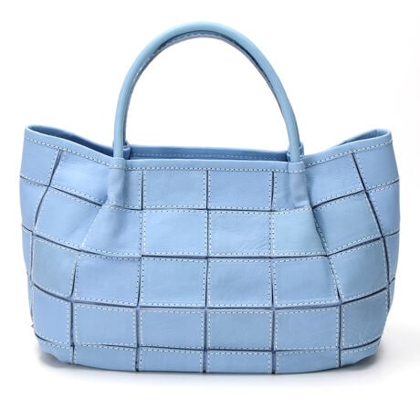 四角くカットされたレザーパーツを丁寧にパッチワーク状に縫製をした、素朴でありながらも洗練された表情のバッグです。