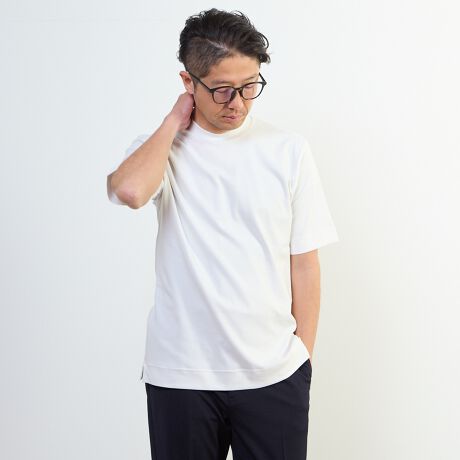 上質素材の持つ高級感抜群な見た目から、キレイめオフィスカジュアルまで対応できる優秀なTシャツです。