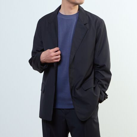ゴージラインを低めに設定し、ノーベント・ボックスシルエットのカジュアルジャケットです。