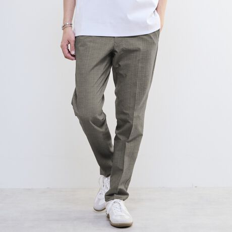 腰回りに程良くゆとりを持たせながら、裾にかけて自然に絞られるテーパードシルエットが、すっきりとした大人らしいスタイルを演出します。