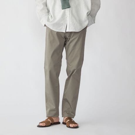 ヒップからももにかけて適度なゆとりを持たせ、膝から裾へかけては徐々に細くなるテーパードシルエット。
