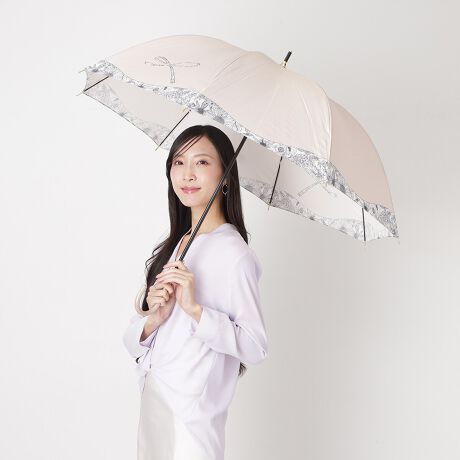 縁どられた花柄と、リボンのプリントが目を引く華やかな雨傘。