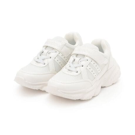 トレンドのやや厚底ソールにとりはずせるパールやオーガンジーリボンのカスタムチャームが付いたメゾピアノらしい可愛さをプラスしたスニーカーです。サイドのハートパンチングをほどこしたグリッター生地のラインでスポーティーな雰囲気に。面ファスナーと伸縮性のあるゴム紐で脱ぎはきしやすいのも魅力です。0.5cmサイズを調整できる中敷きがついています。ラベンダー土台はグラデーションプリントの為、物により色の出方が異なります。≪重さ≫20cm/片足約188g