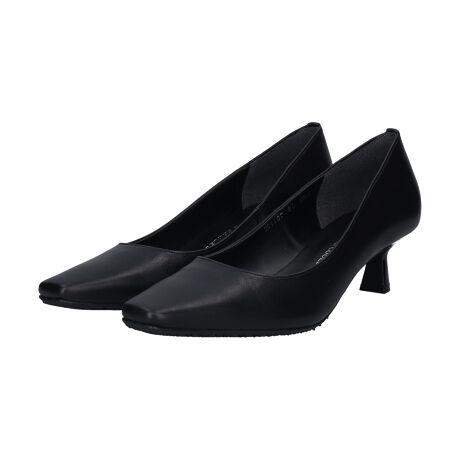 スクエアトウのレザープレーンパンプスは、アッパーには撥水加工を施し、急な悪天候にも対応可能です。