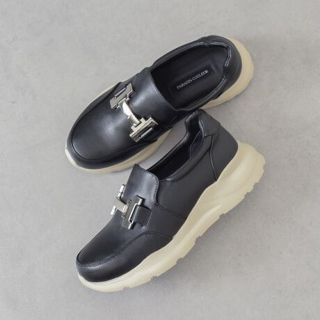 スポーティなソールに上品なオーナメントデザインを組み合わせた、ムード感のあるローファースニーカー。