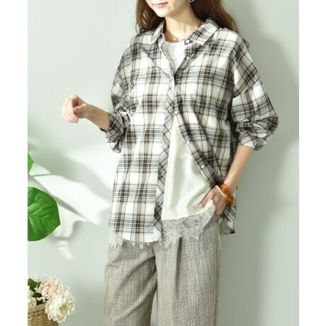 ナチュラルなシアー感、さらになんといっても軽さが特徴のチェック素材を使用。ソフトな風合いなので、これからの暑いシーズンにも大活躍間違いなしの1枚です。