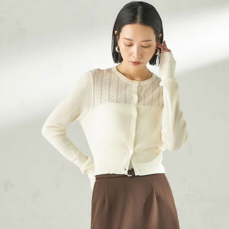 華奢なコットン糸のアイレット編みカーディガン。