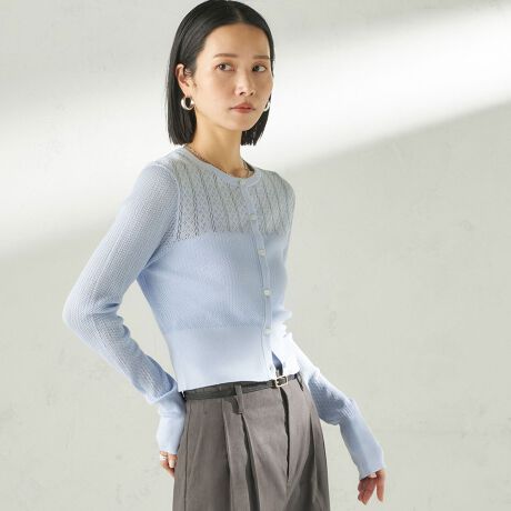 華奢なコットン糸のアイレット編みカーディガン。