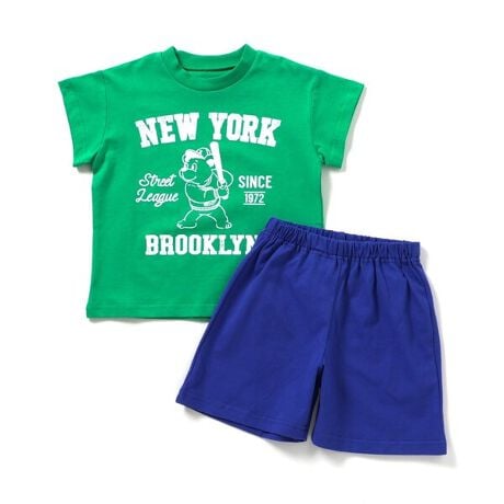 100:身丈40 身幅36 肩幅33 袖丈7 袖口幅13.5 ウエスト幅22 前股上20 股下10 足口幅22.5 腰幅36.5
