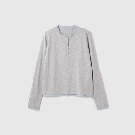 レイヤードしたドッキングデザインで遊び心があるヘンリーネックカットソー。