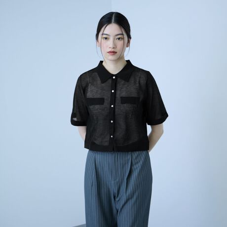 襟付きのクリーンなルックスは、カジュアルにもきれいめにも合わせやすく、デニムとの相性も抜群。