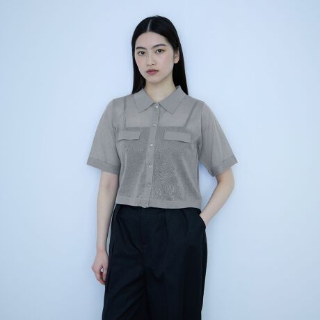 襟付きのクリーンなルックスは、カジュアルにもきれいめにも合わせやすく、デニムとの相性も抜群。