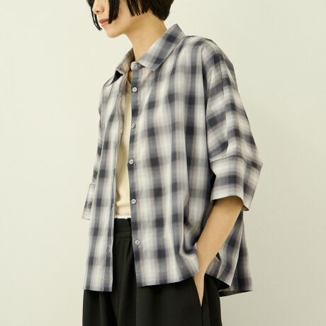 クラシックなレギュラーカラーとフロントボタンで、きちんと感を残しつつ、カジュアルにも合わせやすいデザインです。