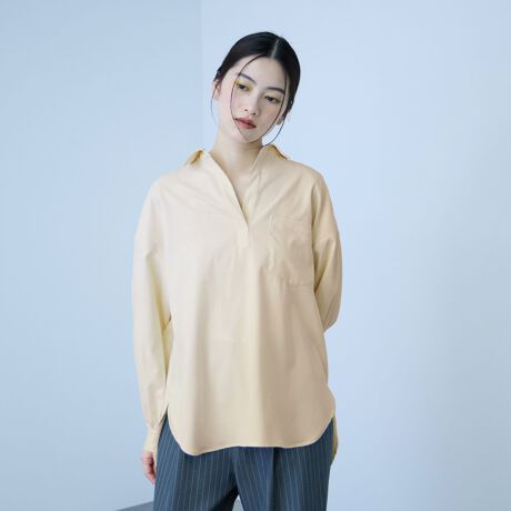 ナチュラルなシワ感が特徴の軽やかな生地を使用したプルオーバーシャツ。