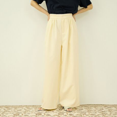 ウエスト部分にはタックを施し、程よいボリューム感を持たせることで、リラックス感ときれいめな印象を両立しました。