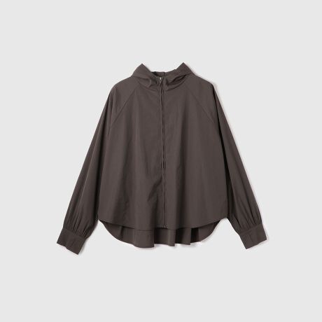 フロントジップの気軽で羽織りやすいパーカーをベースに後ろのギャザーがデザインポイント。