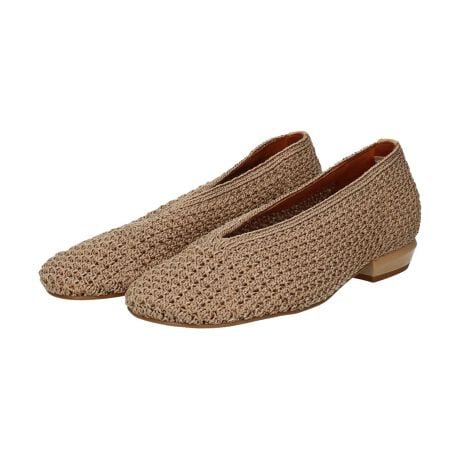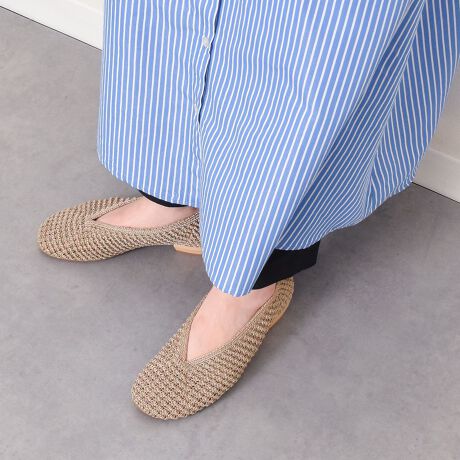 ニットアッパーがナチュラルで軽やかな印象を与えるフラットパンプス。