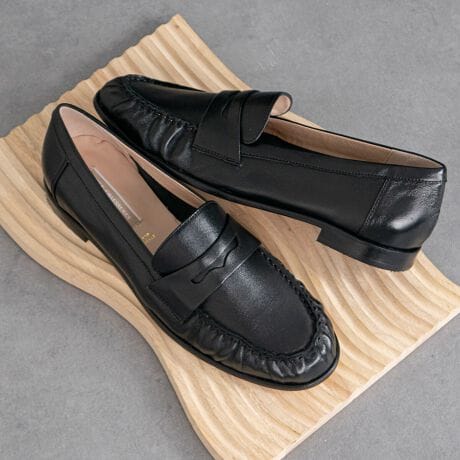 ベーシックなデザインのラウンドトウフラットローファーは、スタイリングやシーズンを選ばずに使用できる一足あると便利なアイテムです。