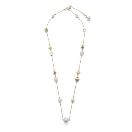 パールやカットガラスなどさまざまなパーツの中に星モチーフを効かせたロングネックレス。