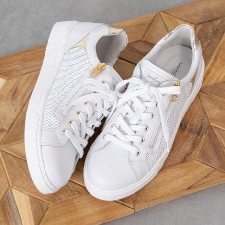 抜け感のあるパンチングレザースニーカーは、サイドジップ仕様で着脱し易いです。