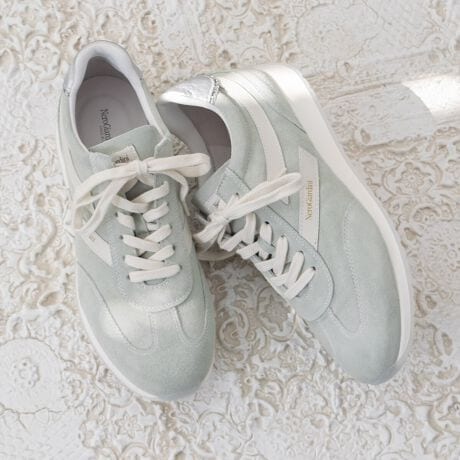 スエードの色合いがフェミニンな雰囲気のレースアップスニーカーです。