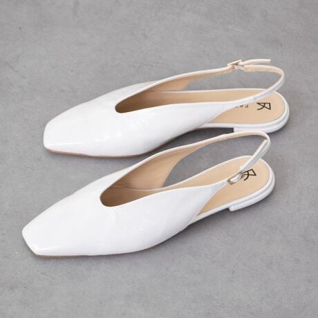 深めのVカットが足元を美しく見せるフラットバックバンドパンプス。