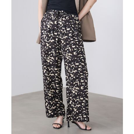 視線を引き寄せる、印象的なモザイク柄。シンプルな装いも一気にサマになる、大人のための主役パンツです。コントラストの効いた3配色で描いたモザイク柄が、スタイリングにしっかり存在感をプラス。シンプルなトップスと合わせるだけで、洗練された印象に仕上がります。広がりすぎないワイドシルエットは、ラフになりすぎずすっきりとしたバランスに。ウエストは総ゴム仕様で、紐で調整もできるため、ストレスなく着用できます。コーデに迷った日も頼れる一本です。