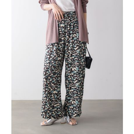 視線を引き寄せる、印象的なモザイク柄。シンプルな装いも一気にサマになる、大人のための主役パンツです。コントラストの効いた3配色で描いたモザイク柄が、スタイリングにしっかり存在感をプラス。シンプルなトップスと合わせるだけで、洗練された印象に仕上がります。広がりすぎないワイドシルエットは、ラフになりすぎずすっきりとしたバランスに。ウエストは総ゴム仕様で、紐で調整もできるため、ストレスなく着用できます。コーデに迷った日も頼れる一本です。