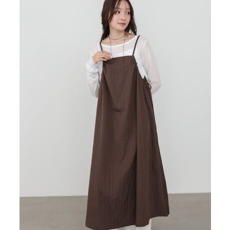 サイドに寄せたギャザーデザインが、さりげなく表情をつくるキャミワンピース。シンプルなIラインシルエットに、立体感をプラスした1枚です。華奢な肩紐が女性らしく、インナー次第でロングシーズン楽しめるのも魅力。アイボリーはやわらかく上品に、ブラウンはこなれた印象に、ブラックはシックに引き締まった雰囲気で着ていただけます。