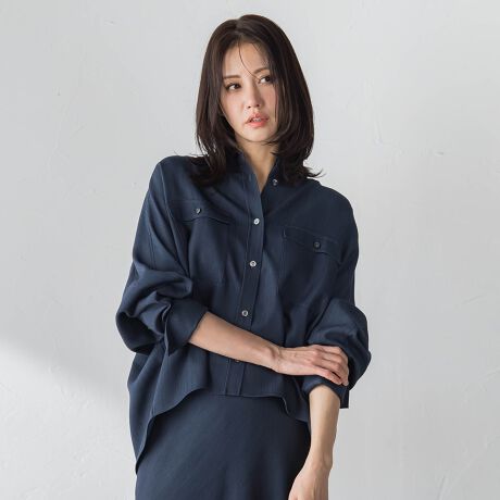 フロントにはフラップ月でポケットをあしらい、一枚でも映えるデザインに。前開き使用なのでシャツとしても軽い羽織としても活躍します。