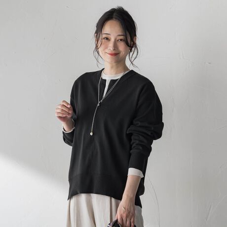 程よくゆとりのあるシルエットと柔らかな風合いが魅力のニットトップス。