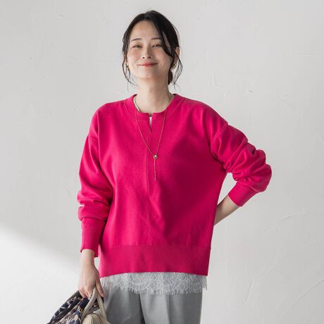 程よくゆとりのあるシルエットと柔らかな風合いが魅力のニットトップス。