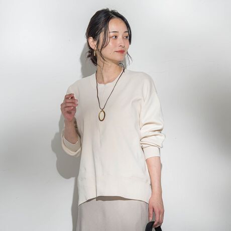 程よくゆとりのあるシルエットと柔らかな風合いが魅力のニットトップス。