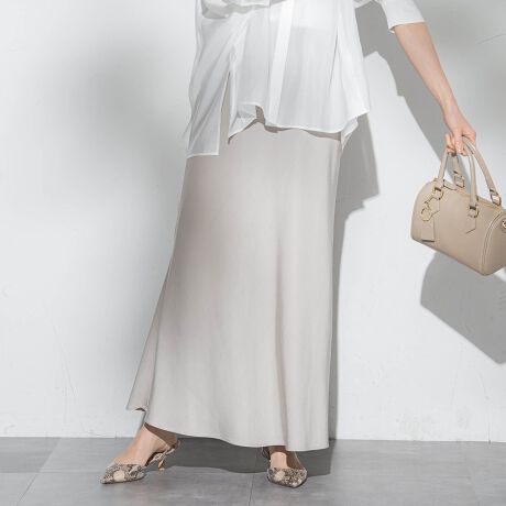 バイアス裁断による美しいドレープが特徴のマーメイドスカート。