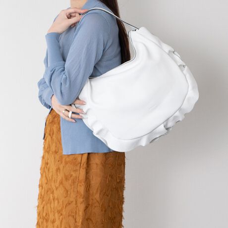 ふんわりとしたサイドのフリルがアクセントになった「サイドフリルホーボーバッグ」。