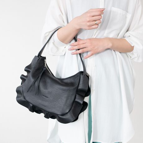コンパクトで使いやすいサイズ感が魅力の「サイドフリルホーボーバッグ・ミディ」。