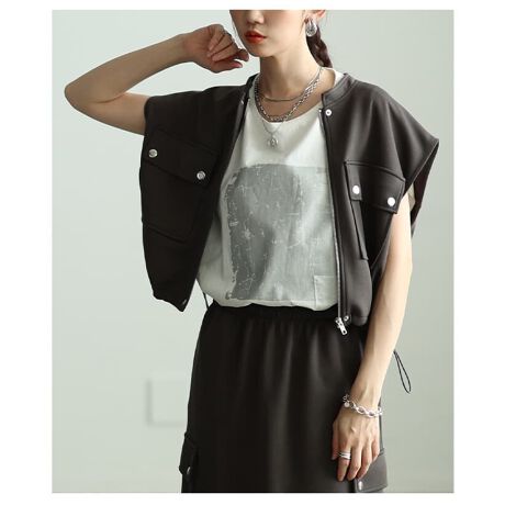 程よいハリ感のあるダンボール素材を使った、ショートベスト×タイトスカートのセットアップ。すっきりとしたシルエットで、着るだけできちんと感のある印象に。セットでも単品でも着回せて、コーデの幅が広がります!