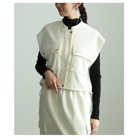 程よいハリ感のあるダンボール素材を使った、ショートベスト×タイトスカートのセットアップ。すっきりとしたシルエットで、着るだけできちんと感のある印象に。セットでも単品でも着回せて、コーデの幅が広がります!