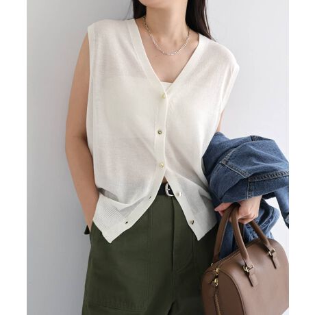 UVカット 接触冷感 ノースリーブ シアー カーディガン トップス