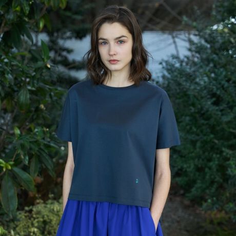 米綿の超長綿をコンパクト紡績でクリーンな糸に仕上げ、毛焼きとシルケット加工を施すことで、クリアな表面感とコットン100%にはない高い接触冷感機能が魅力の素材です。