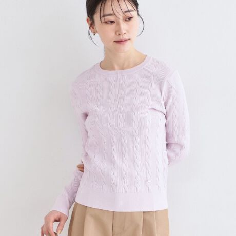 ・細すぎないケーブルの編み幅で、身体のラインを拾いにくい一枚。