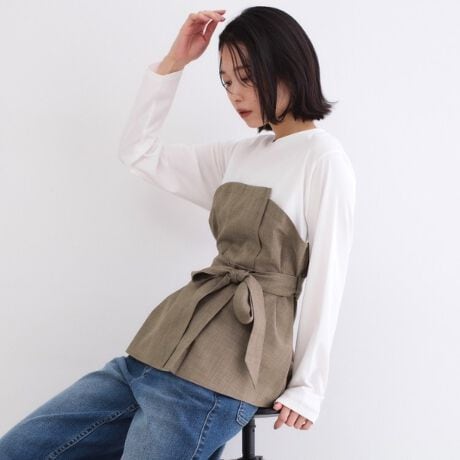 大人も取り入れやすい、タックディテールのビスチェドッキングカットソー