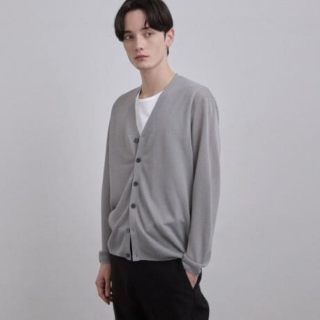 非常に軽やかな編み地で、春から夏にかけての羽織りに適した、清涼感のある着心地が魅力です。