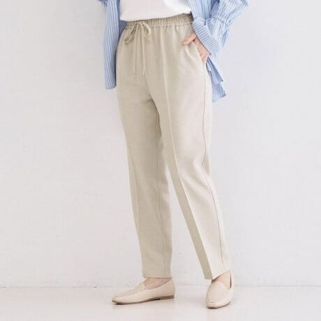 ・きちんと感がありながら、イージーウエスト&ストレッチ性もある素材を使用しているので、穿き心地も快適。