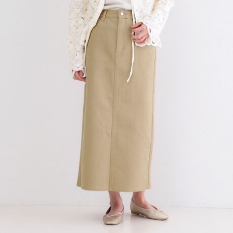 体のラインを拾わず、ラフに穿けるカジュアルタイトスカート。