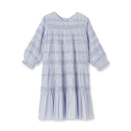 ギャザーボリュームのフェミニンなシルエットが目を惹くワンピース。
