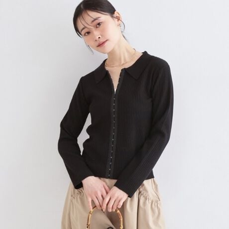 ホック使いでモードに着こなせるポロ衿リブニットカーディガン