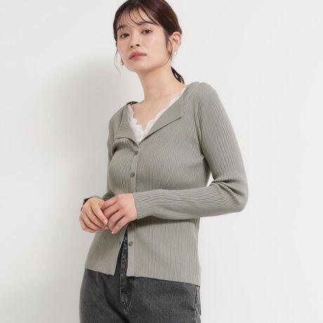 レースレイヤードリブニット